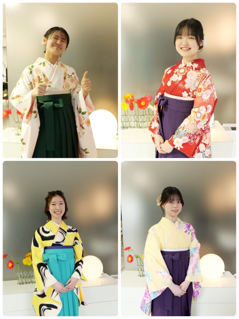 2026/3/5 卒業式 ご卒業おめでとうございます! 大切な節目をお手伝いさせていただき嬉しく思います。 成人式、卒業式の着付け、衣装レンタル承ります。 スタッフまでご相談下さい☆ 二十歳おめでとうございます